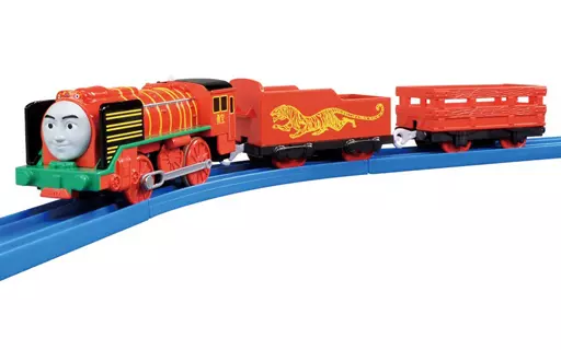It is a brave and kind locomotive with a red body, with a dragon face on the chimney and a tiger on the coal water turbine.