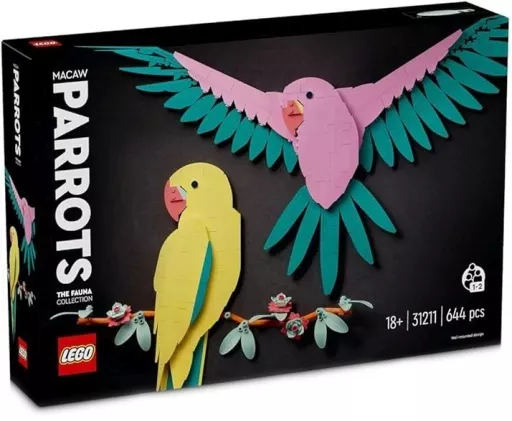 You can assemble a colorful 3D Lego art with 2 macaw motifs and decorate it on your wall (no desk stand included).