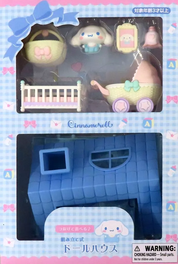 Roof part, floor part, wall part x 3, pillar part, wallpaper sheet x 6, cinnamon, crib, stroller, lamp, picture frame, basket