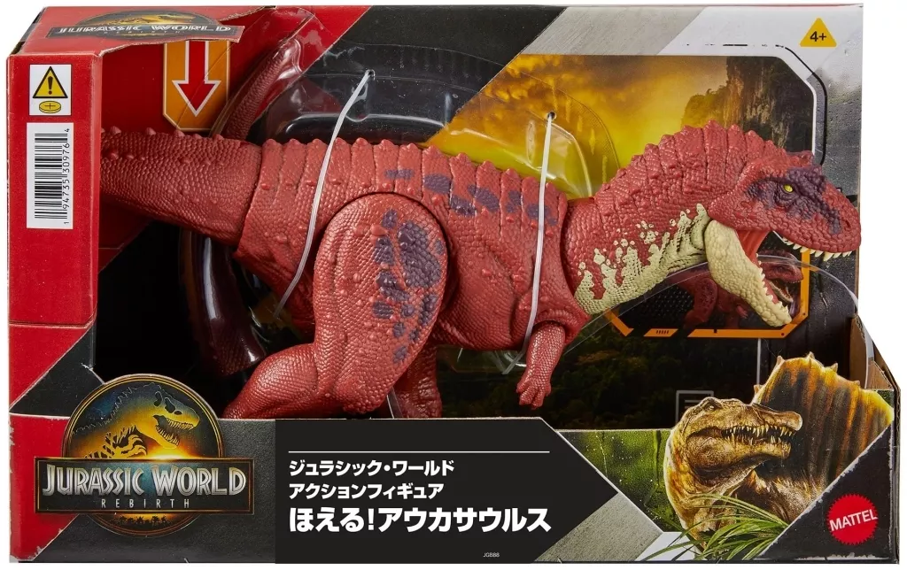 商品解説■尻尾を上下に動かすと噛みつき、回転させると首を左右に振りながらほえて噛みつくアウカサウルスのフィギュア。
