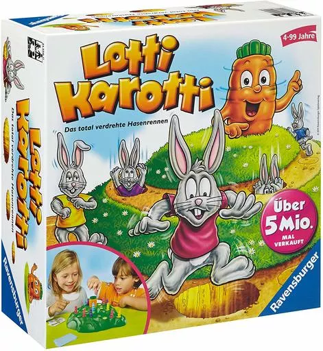 This is a Sugoroku style game with a three dimensional hill board and a gimmick that opens a hole in a mass by turning the carrot.