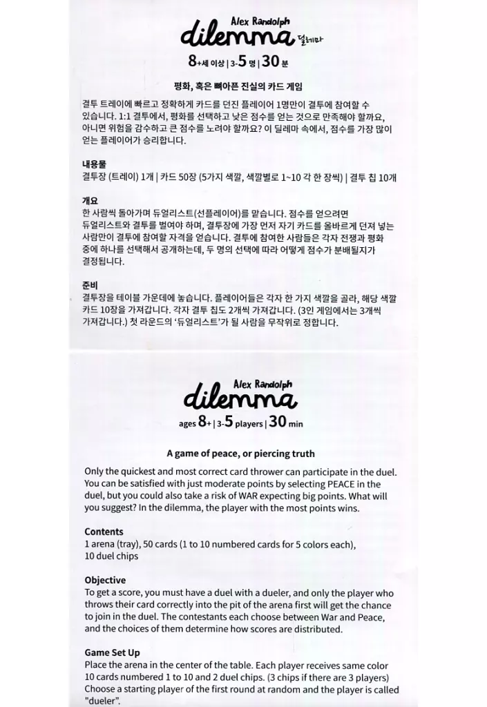During the duel, you must consider whether to choose peace and share your winning points, or choose war and take risks to win more winning points.