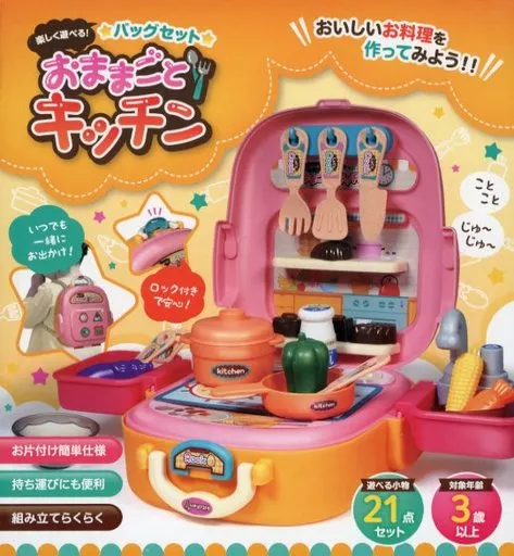 Main Unit, Pot, Frying Pan, Lid, Bowl x 2, Milk, String x 2, Spoon, Fork, Kitchen Knife, Turner, Ladle, Ladle with holes, Vegetables x 4, Chocolate x 4,