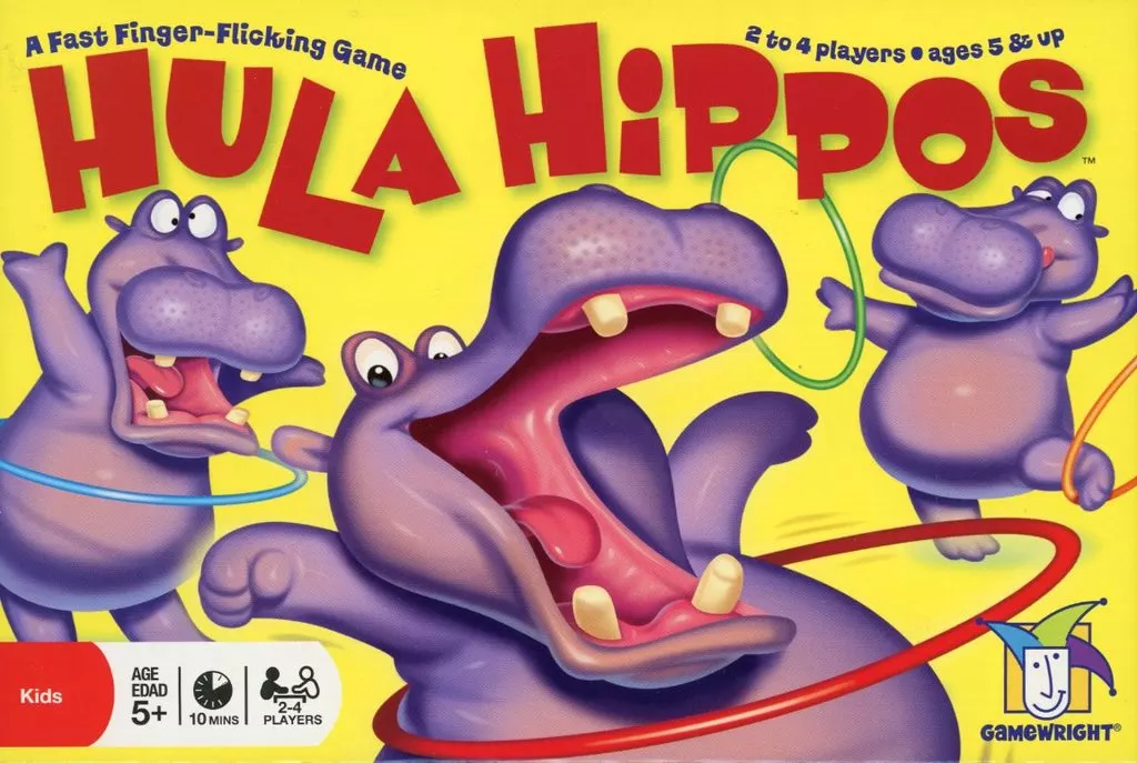 encourage them to jump over the hoops. The first player to lose the hippos is the winner.