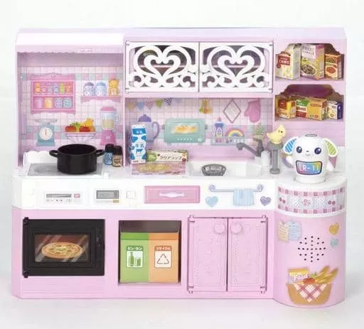 Kitchen main body, 8 rivets, Pi-chan, 9 takoyaki, 2 spatulas, LR-11 AI robot, pot, pot lid, hot plate, takoyaki plate, salt mill (shio), pepper mill (pepper), kettle pot, whipped cream, tongs, zaru, Peeler, keyhole spoon, Pi-chan stand, pot handle, senyo paper accessory set