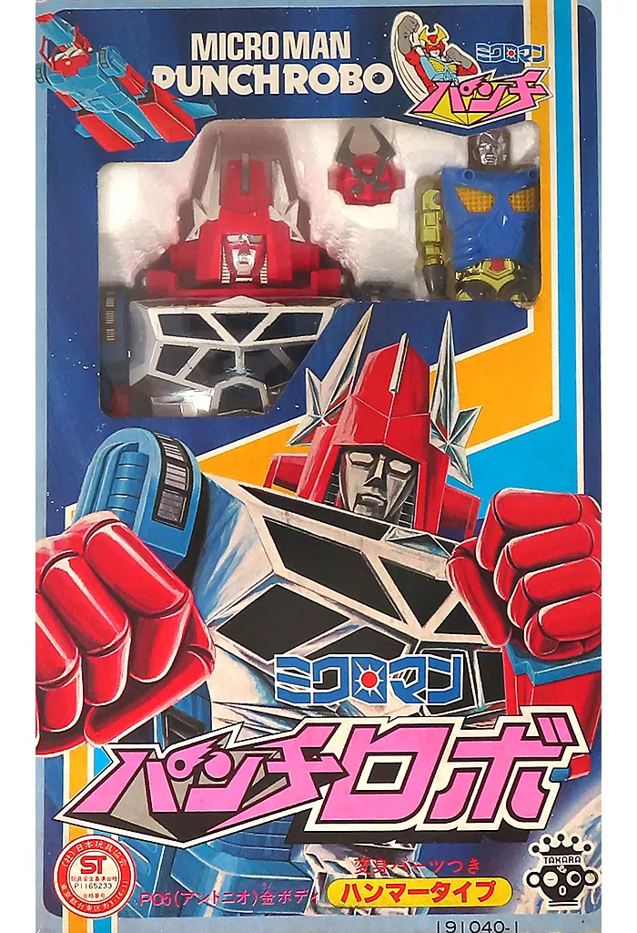 Punch Robo main body, Microman (Antonio / hammer type / gold body), helmet, weapon x 2, armor, punch x 2, missile x 3, pedestal, booklet and instruction manual