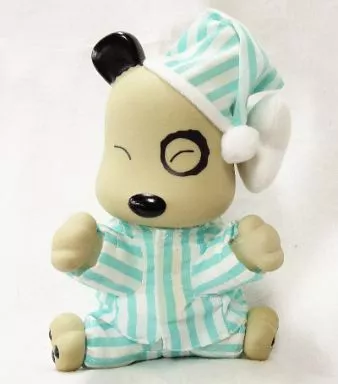 This is a turtle mascot with striped 々柄's light blue pajamas.