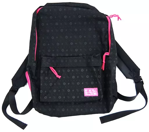 A black rucksack from a distance. but from a closer look, the Yukari Kingdom style * pink zipper is the focal point of this item.