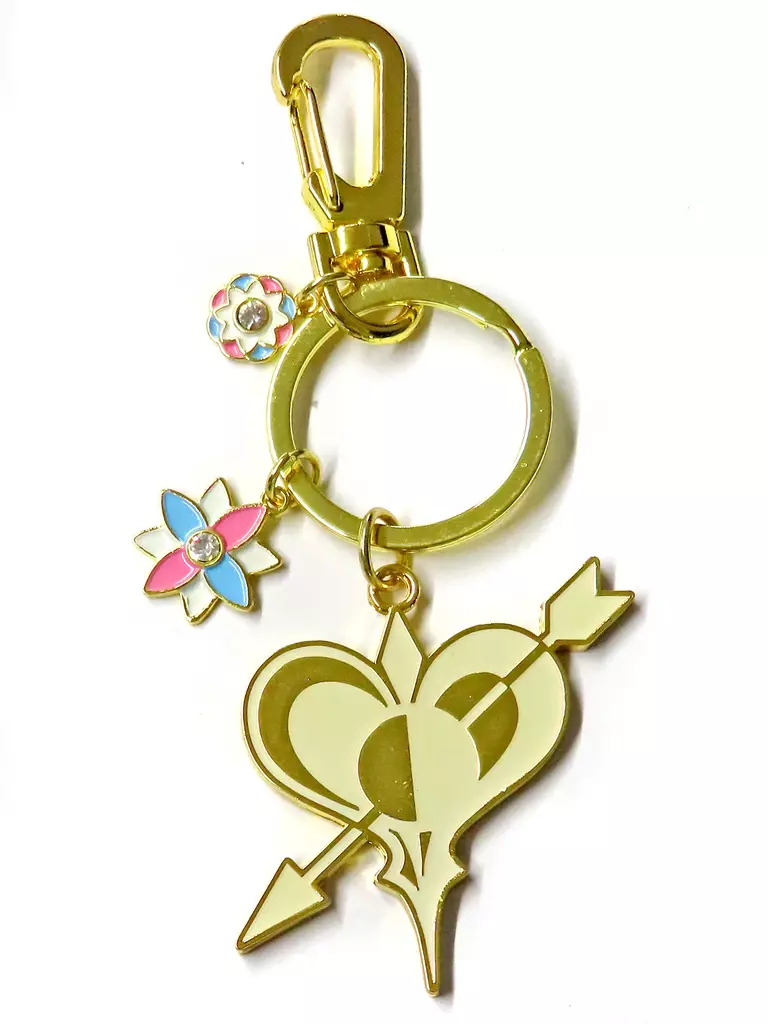 This is a key ring with the Michi mark of the current tour shining in gold. The flower motif charm also adds cuteness.