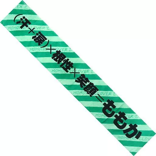 The muffler towel has a stripe pattern with a catch phrase.
