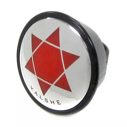 A ring shaped light with a red Hexagram star logo. The band part is made of silicon, so it can be attached to any finger.