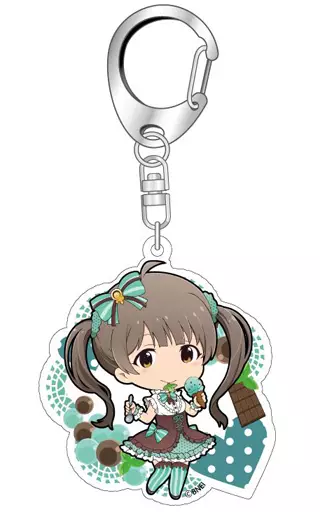 This is an acrylic key holder with a cute original illustration of MILLION LIVE! idol that was selected according to the theme, and a background that matches each image.