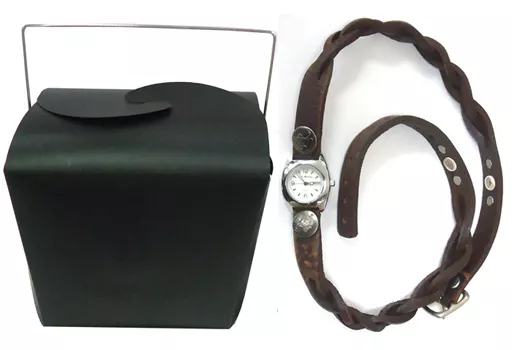 This is a 3-string bracelet watch with a thick leather belt made with particular materials.