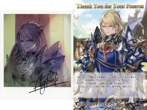 Aglovale Polaroid-style with signature illustration card and postcard with message "GRANBLUE FANTASY - Grand Blue Fantasy" Valentine's White Day Campaign 2018
