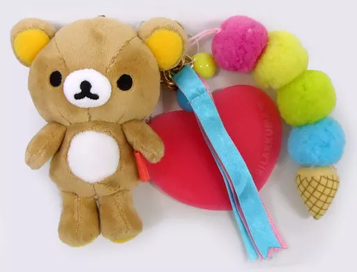 Features a small Rilakkuma Plush toy reproduced in 85% of the usual size, a sherbet-colored heart plate with a logo printed on it, and an ice Plush toy with fluffy pompoms. ☆