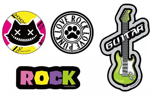 Size : metal badge : approx. 56 mm diameter / high emission metal badge : approx. 56 mm diameter / GG3 resistant stickers (guitar) : approx. W65mm x H115mm/GG3 resistant stickers (ROCK) : W83mm x H30mm