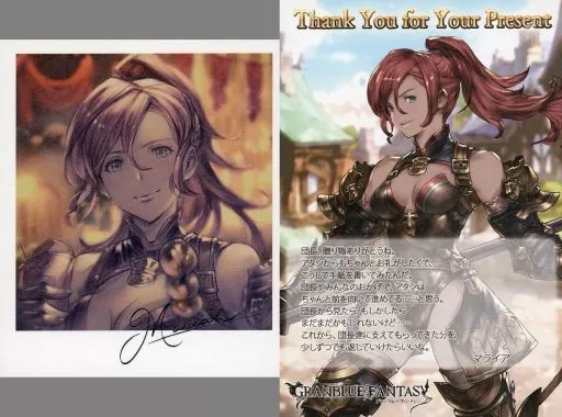 Product Explanation ■ "GRANBLUE FANTA-Gran Blue Fantasy" This is a 『 Polaroid-style with signature illustration card and postcard 』 with a message from the 2018 Valentine and White Day Campaign.