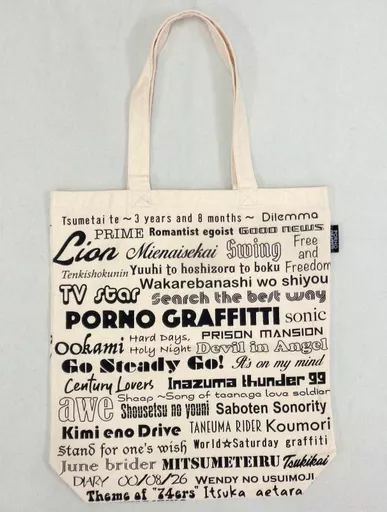 This is a tote bag designed with the title of a single coupling song released by Porno Graffiti so far.