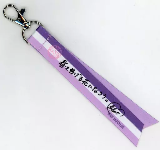 A ribbon-shaped key holder with members' messages printed on it.