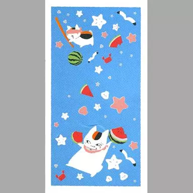 Summer theme is relaxing at the sea. Now available is a bath towel with the image of Nyanko-sensei being on the beach.