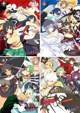 It is a 4-pack set with illustrations of members of Deathjuku Gesshinjo Gakukan, National Hanzo Gakuin, Secret Tachija Girls' Gakuen, and 焔紅 Regiment.