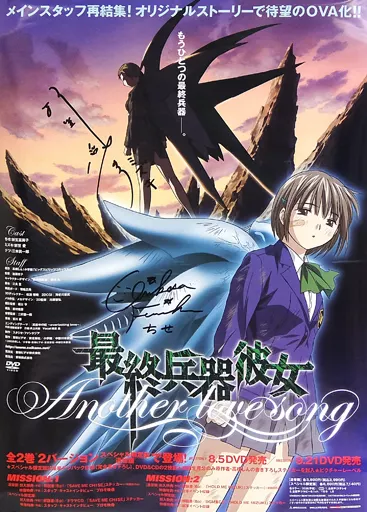 This is B2 promotional poster with handwritten signature announcing that "She, the Ultimate Weapon Another love song", the OVA of the manga "She, the Ultimate Weapon" by Shinsaku Takahashi will be made into a DVD.