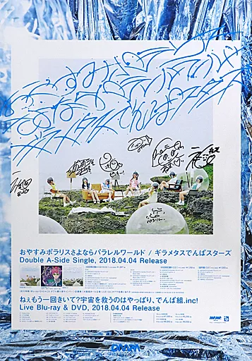 Single "Good night POLARIS Sayonara Parallel World / ギラメタス Series Stars" with handwritten signature announcement poster.