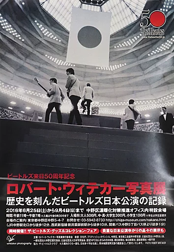 This is an announcement poster of "The 50th anniversary of Beatles' visit to Japan, Robert Whitaker Photo Exhibition".