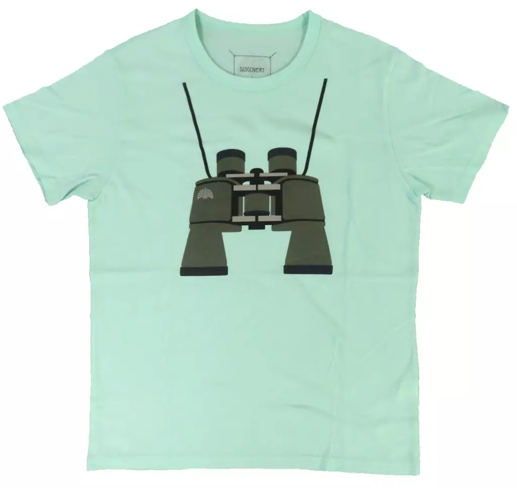 ”ウルトラC”ツアーでも好評を博した、首からぶら提げている風Tシャツの最新版。胸元に大きくプリントされた双眼鏡が、あらゆる不明を明らかにしてくれることでしょう。