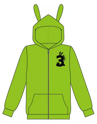 The rabbit eared hood has a print design with the image of each Character actor on the breast.