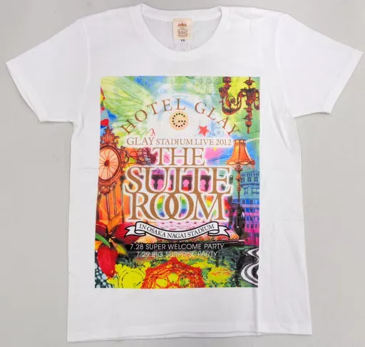 A live T-shirt with a gorgeous illustration of "HOTEL GLAY" and the logo of "THE SUITE ROOM" on the front, and the logo of "THE SUITE ROOM" printed on the back.