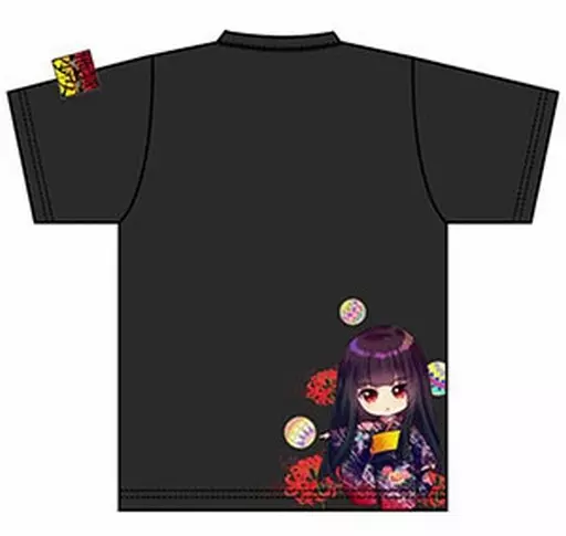 The front of the T-shirt has Spider Lily and temari balls, the shoulders have the 「 HELL GIRL Yoigai 」 logo, and the back has a deformed Character Enmaai.