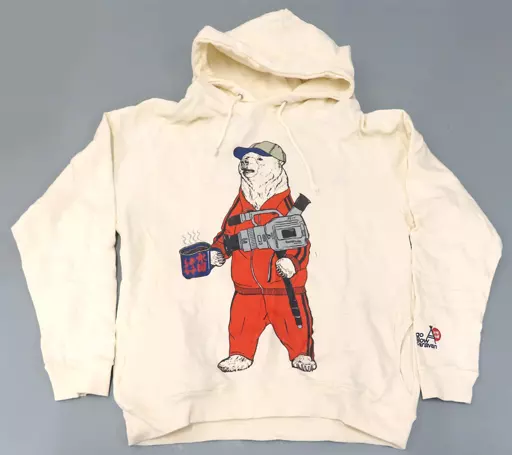 go slow caravanの定番クマシリーズ。今回は嬉野Dの還暦祝いとして、ユーコン川を下った際に着用していたジャージとカメラを持ったクマとして制作。