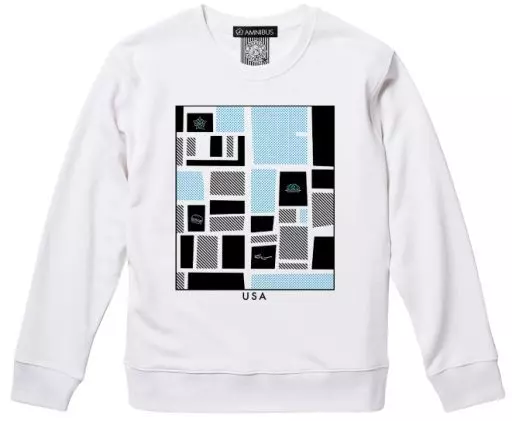 This item is designed with familiar American motifs such as hamburger, UFO, glasses glasses, and headwoods scattered on the map with the image of America.