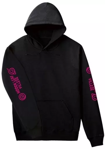 The logo of Konoha Kakure no Sato, translated into English, and the family crest of the Uzumaki family are laid out on both sleeves.
