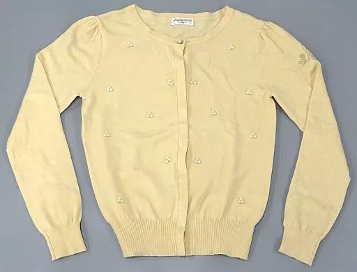 Soft cream color knit cardigan with mellow white pearls typical of lingerie sugar.