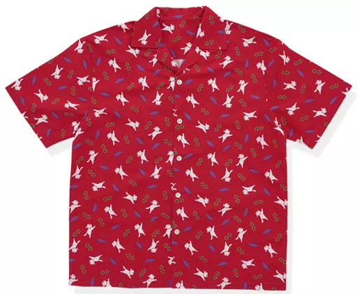 Colorful open collar full pattern shirt with lots of motifs.
