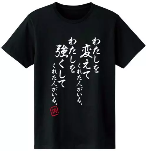 It has a design with an impact that looks like the Tsukiyomi tone line "There is a person who changed me. There is a person who made me strong." written with brush letters.