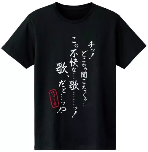 This item has an impact design that looks like Feene's line "Chi! From where I hear. this unpleasant song! A song, then?" written with brush letters.