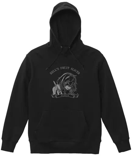 Ali Shea, the name and the English translation of "Hell's Fruit Slicer (Using Fruit Knife in Hell)" are put together to create a college-style design.