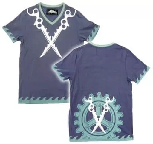 This is a V-neck T-shirt with a gear and two sword pattern that is worn by Ludger.