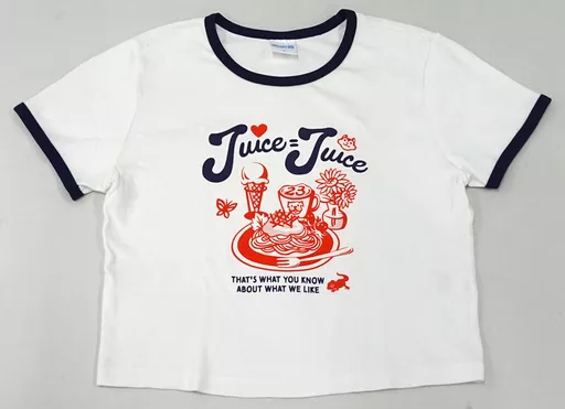 This is a T-shirt with an image of an illustration that looks like the members ordered their favorite things at a pure cafe.