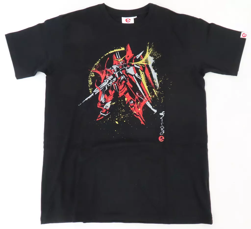 アスラン・ザラの搭乗機ジャスティスガンダムを、筆絵タッチで描いた半袖Tシャツです。