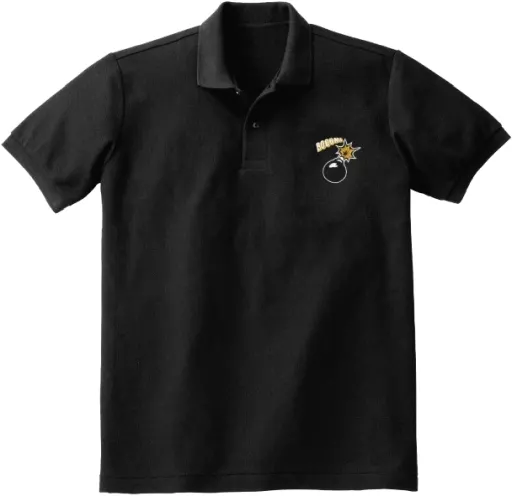 A polo shirt with an embroidered bomb icon as an accent.