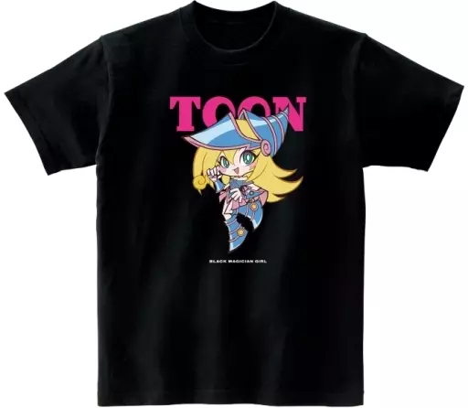This is a T-shirt with an illustration of Black Magician Girl becoming a Toon monster.