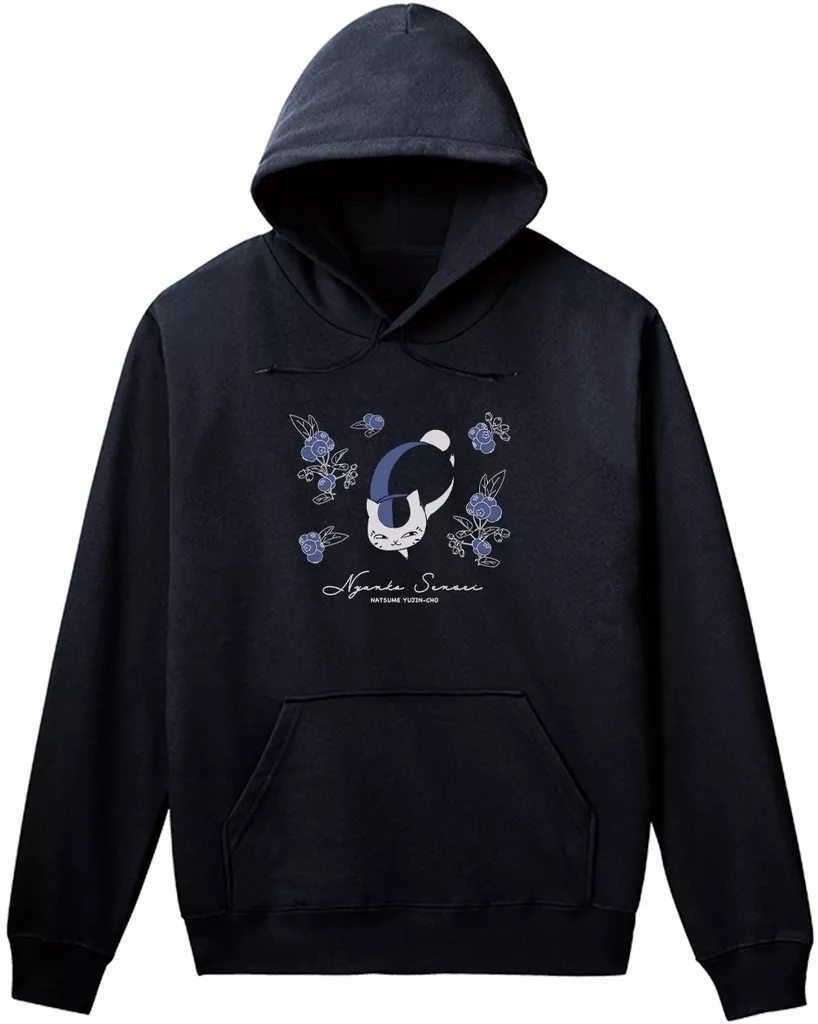 A parka with an illustration of Nyanko-sensei surrounded by blueberries.