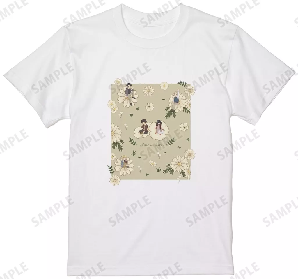 With illustrations of Ellen, Mikasa, Armin, Erarmin, Ervin, and Captain Levi from their childhood into a botanical design, they are newly drawn with a delicate touch and finished into T-shirts.