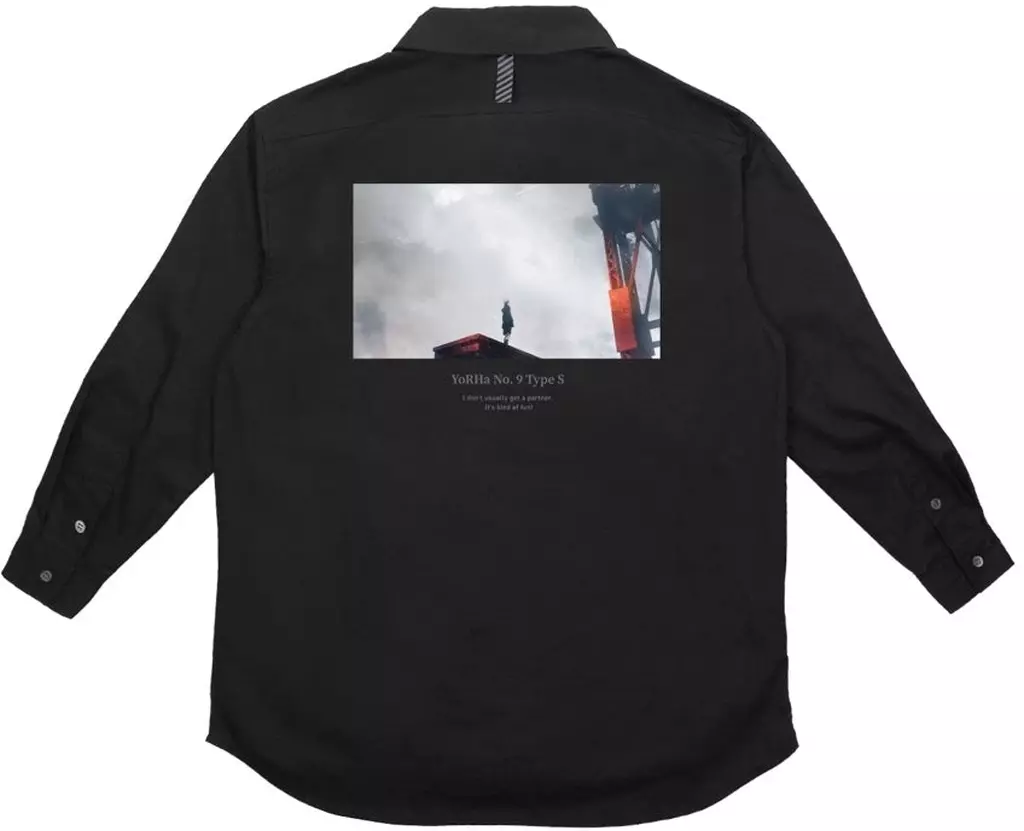 This long sleeve shirt has an impressive 9S scene and an English translation of the lines.