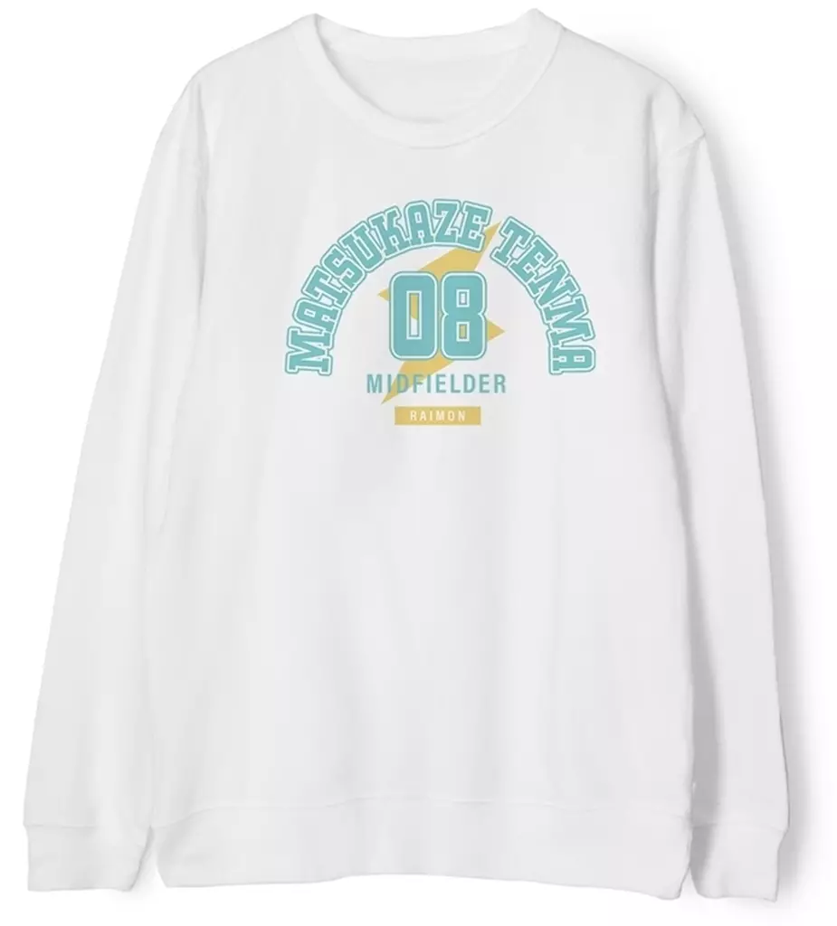 A sweatshirt with the name, position letter and back number of Matsukaze Tenma.