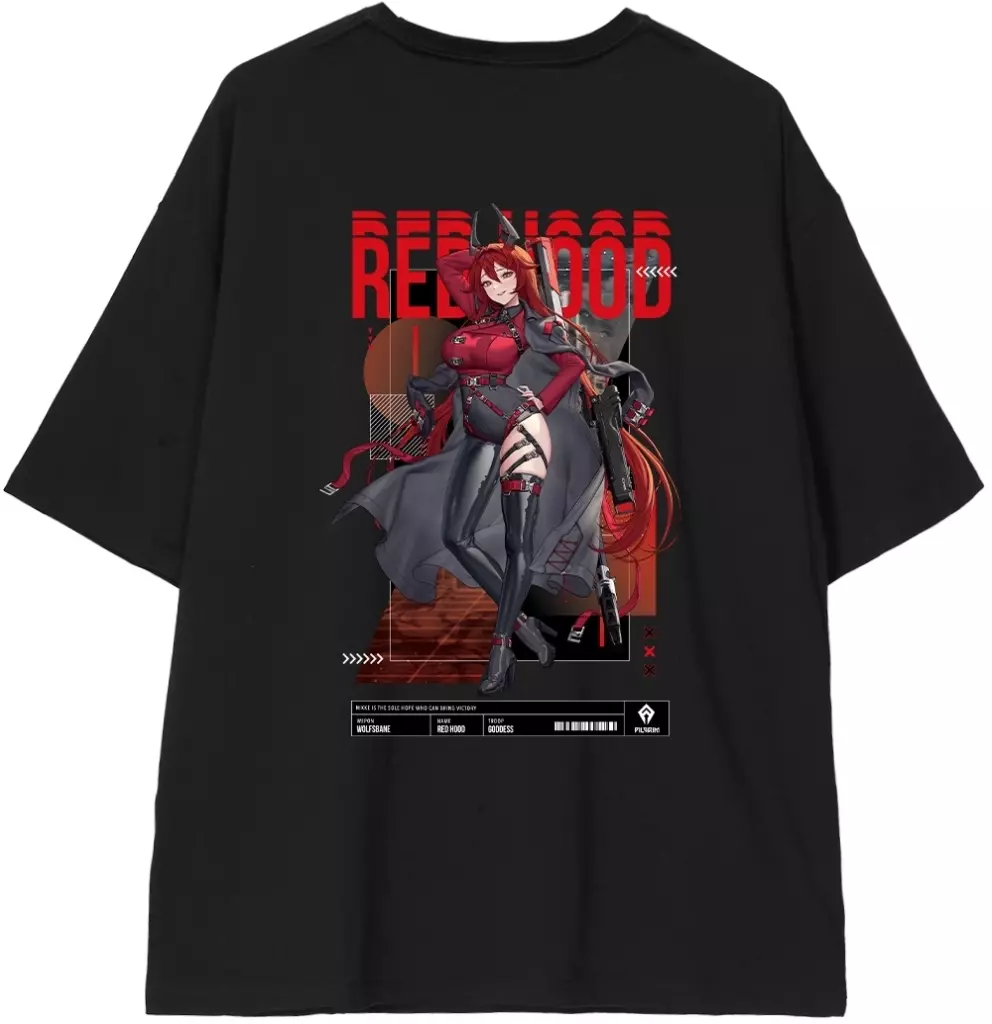 Product Explanation ■ Goddess of 『 Victory : The collaboration item "LOVECACAO Illustration Red Food Tactical Fashion Ver. BIG Silhouette T-Shirt" between NIKKE 』 and "LOVECACAO" is now available.